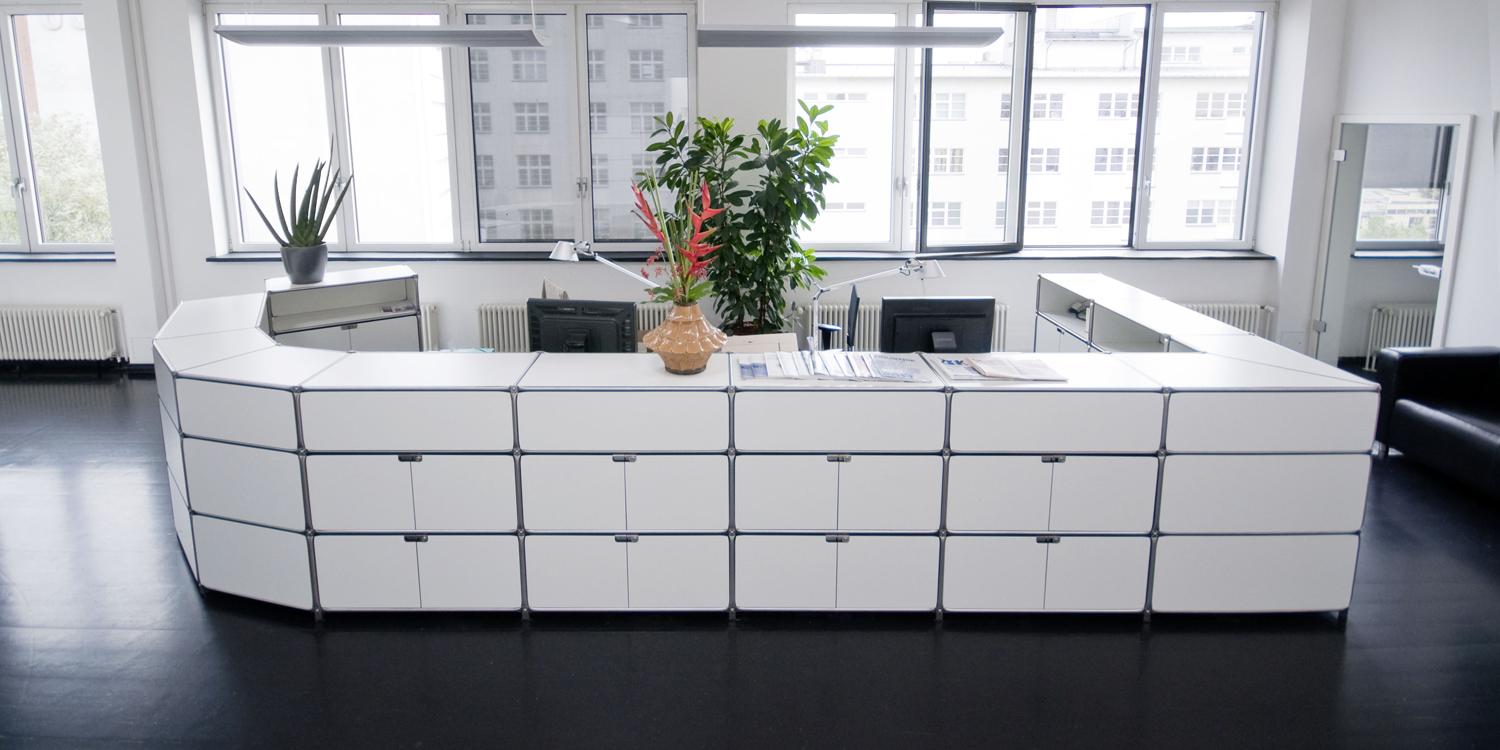 SYSTEM180のドロワーと長めの天板を組み合わせたデスクユニットです。